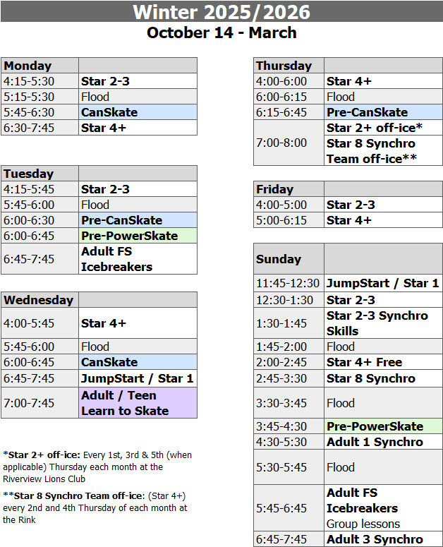Download Printable Schedule: Winter 2025-2026 Schedule